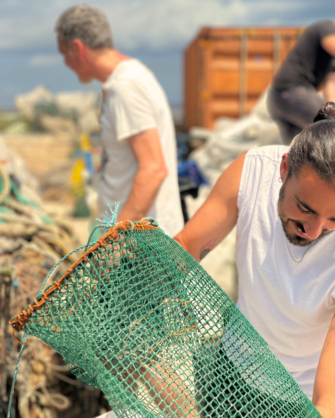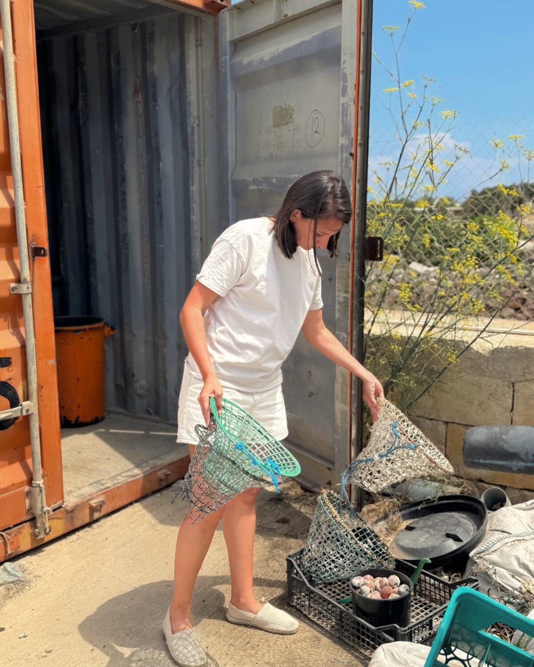 A coastal clean-up held on 21 June 2025, organised in collaboration with żibel, provided the materials: primarily disused fishing nets and jerry cans, which became central to the co-created modular intervention.